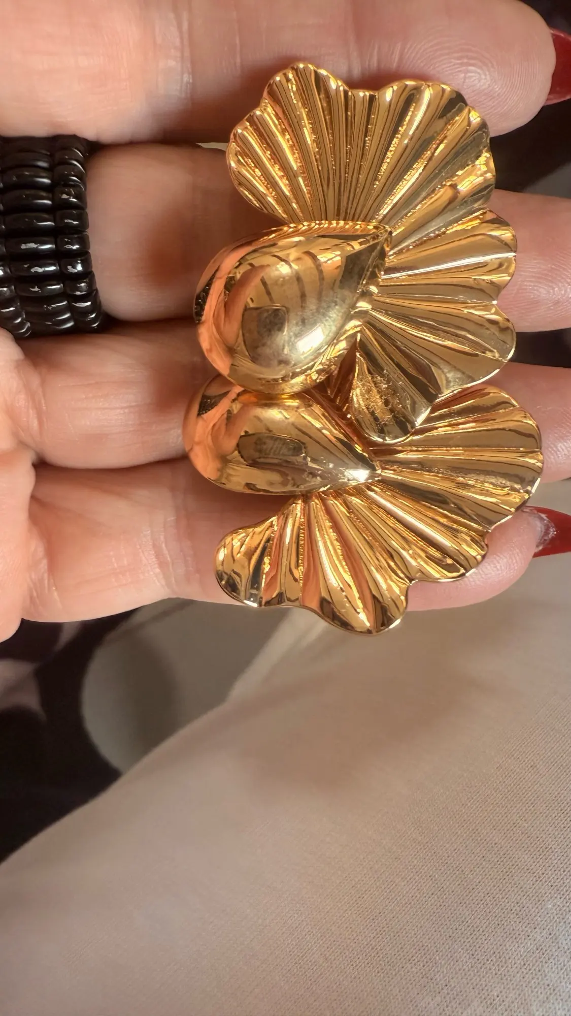 Elevate your everyday look with the timeless charm of the Golden Petal Studs. These sculpted earrings bloom with elegance, featuring a fan-shaped petal design that catches the light with every turn. Crafted in radiant gold, they add a refined touch to both casual and formal outfits.